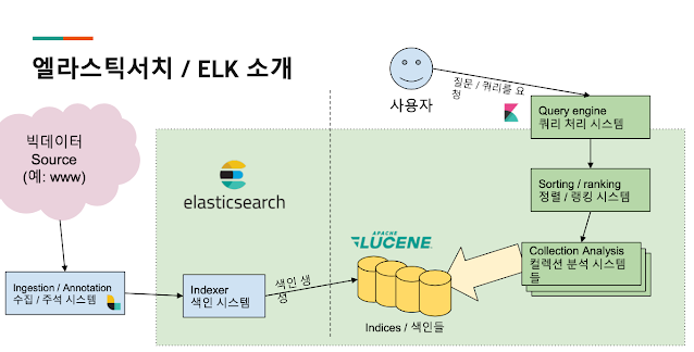 - 위에서 엘라스틱서치(라기보다는 루씬)이라는 의미는 아래 그림처럼, Elascticsearch의 색인 시스템으로 생성된 각각의 색인들은 루씬을 이용해 색인을 생성하기 때문