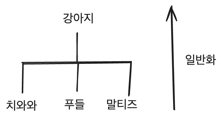 - 예를 들어 우리가 게임을 만든다고 했을 때, 전사 캐릭터의 손 모듈을 만든다면 실제로 내 손이 할 수 있는 모든 기능을 모듈에 넣을 필요는 없다. 게임에서 필요한 무기를 들거나 공격하는 기능만을 구현하면 된다. - 일반화는 여러 가지 사항을 공통된 성질에 따라 그룹핑해서 같다고 간주하는 것이다.