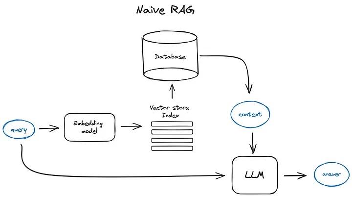 naive RAG - data crawl → text를 chunk로 분할 → Transformer Encoder 모델을 사용해 인코딩 후 → vectorDB에 저장