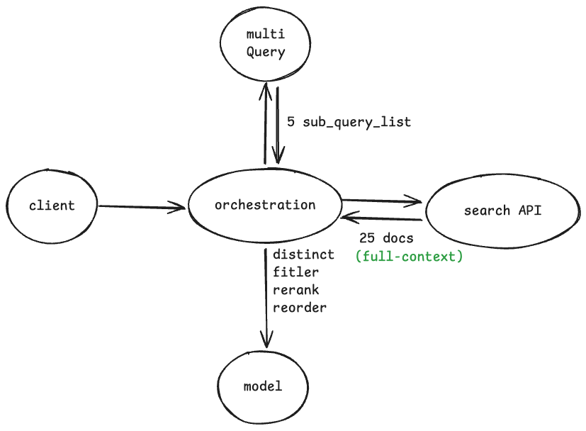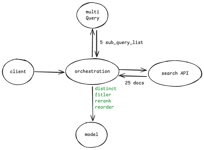 - 유저 질의를 모델을 통해 유사한 질문을 생성하고 '유저질의 + 모델이 생성한 질의'로 검색