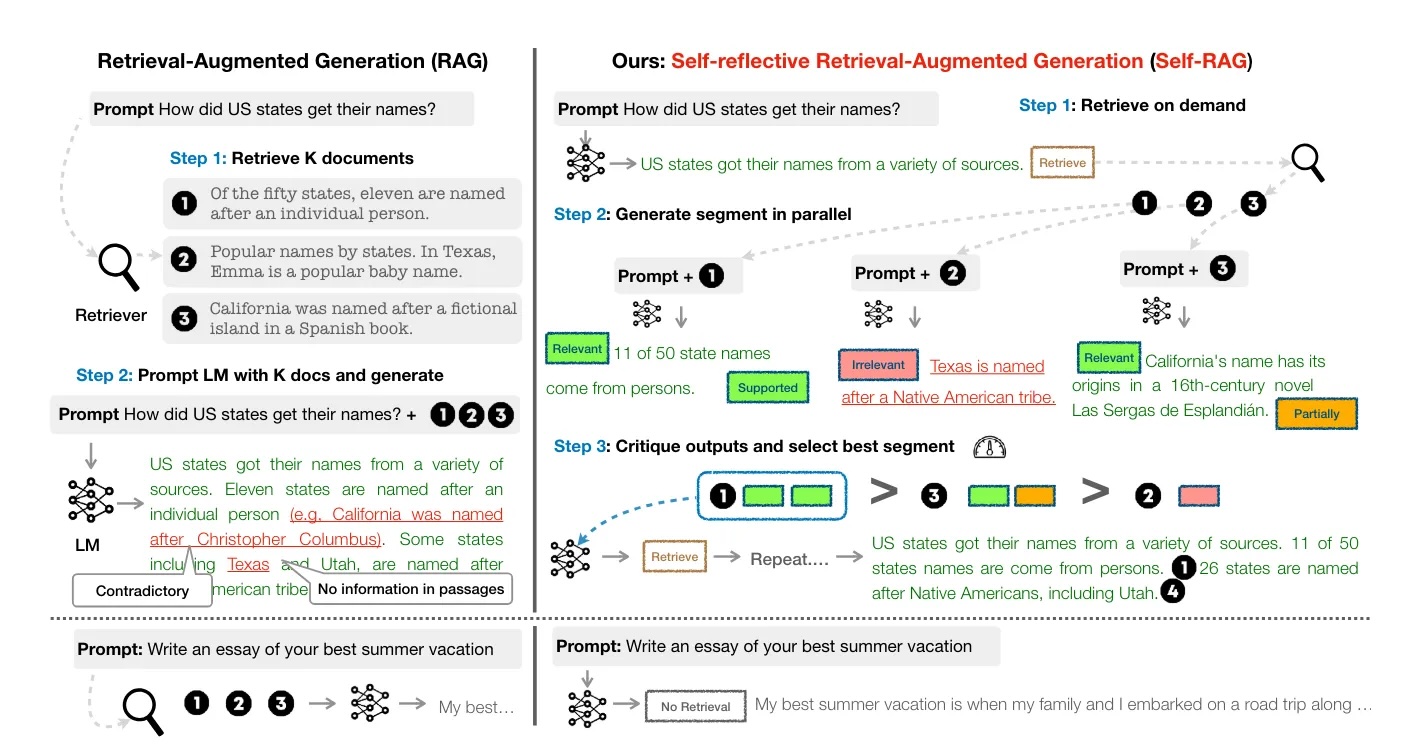 - self-reflection으로 환각으로 인해 문제가 있는 답변이나 질문을 해결하지 못하는 답변을 수정할 수 있도록 하여 다양한 작업에서 사실성과 다양성을 향상
